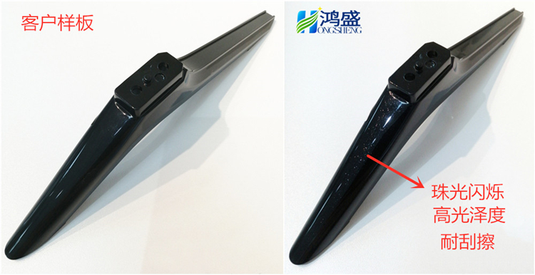 今天小編就跟大家分享一款烤漆黑色珠光絢閃效果的鴻盛免噴涂材料在家用電器-液晶電視機底架的應用案例。