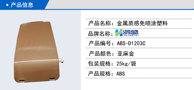 亞麻金金屬質感免噴涂 ABS料在汽車外飾上的廣泛應用。這款產品采用編號ABS-D1203C原料生產制作,能夠達到金屬質感的效果。色澤潤亮,效果超出了客戶的預期,深受客戶的喜愛。客戶看到我們的樣板后評價道材料非常亮、非常靚、非常炫、非常閃。