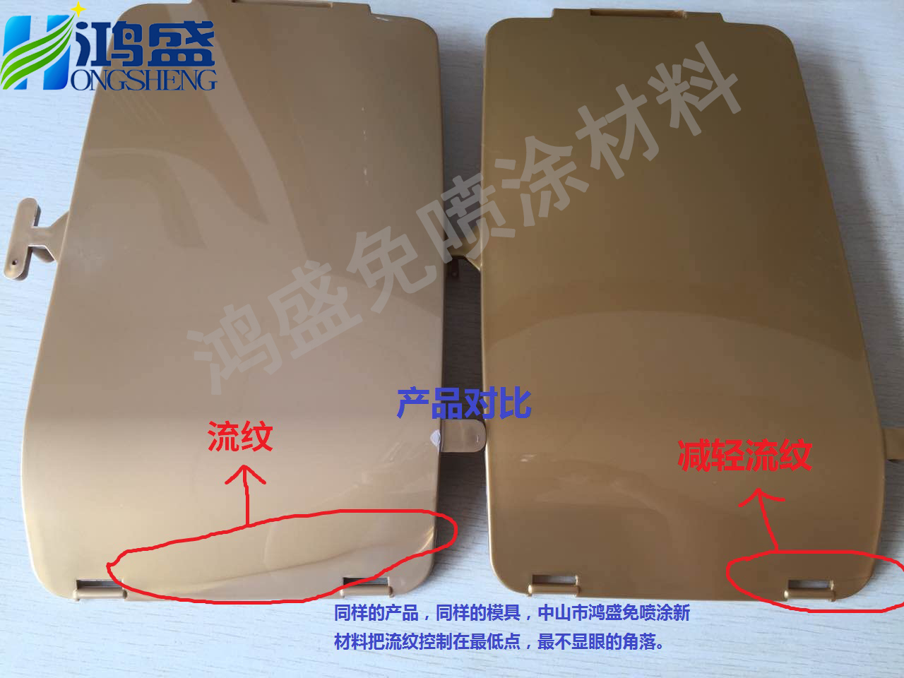通過對核心原料技術(shù)的掌控,鴻盛成功突破了“流痕”技術(shù)瓶頸,并大幅度減輕熔接線,達到無流痕效果。