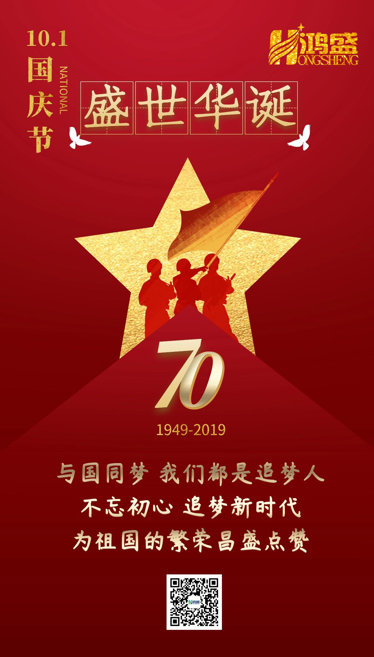在中華人民共和國(guó)成立70周年之際,鴻盛新材全體人員提前預(yù)祝大家國(guó)慶節(jié)快樂!也在此向我們?cè)絹碓綇?qiáng)大的祖國(guó)以及每一位老一輩革命家致以最高的敬禮!...