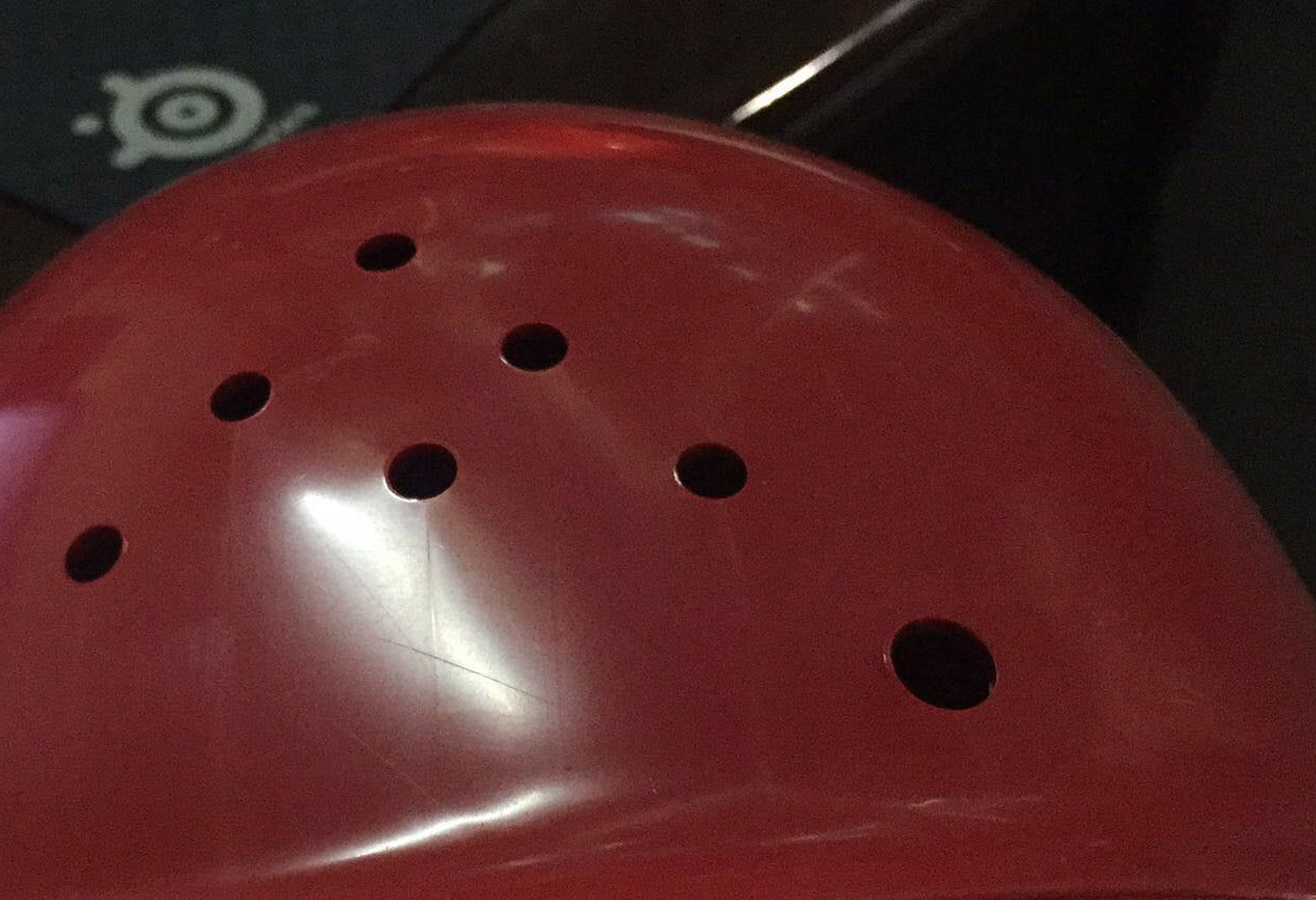 下面是我們的材料應用在有孔洞結構的頭盔產品上的效果。