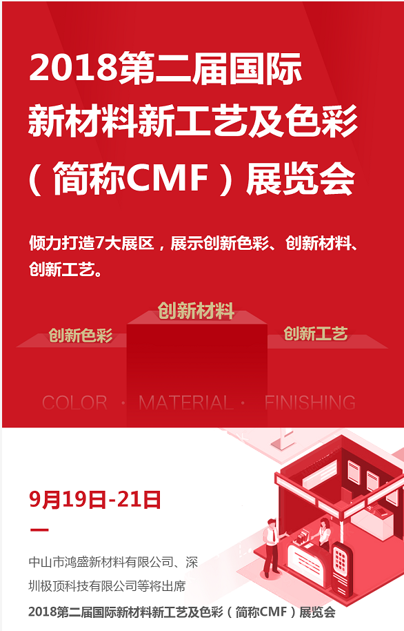 2018年9月19-21日,我們在第二屆國際新材料新工藝及色彩(CMF)展覽會等你!