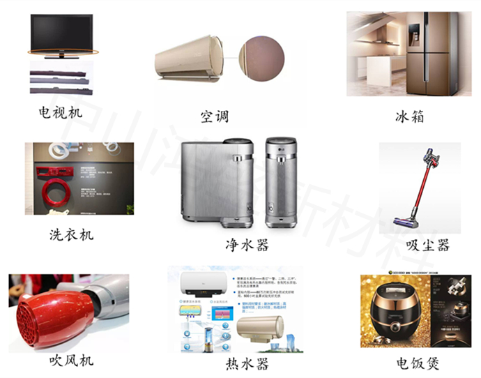 鴻盛免噴涂塑料通過注塑成型可直接達到黑又亮、金屬顏色、閃爍、自然質感等效果,外觀優異,豆漿機、飲水機、電飯鍋、熱水器、洗衣機、冰箱、空調、電視機等都越來越多地采用免噴涂塑料,尤其是小家電。