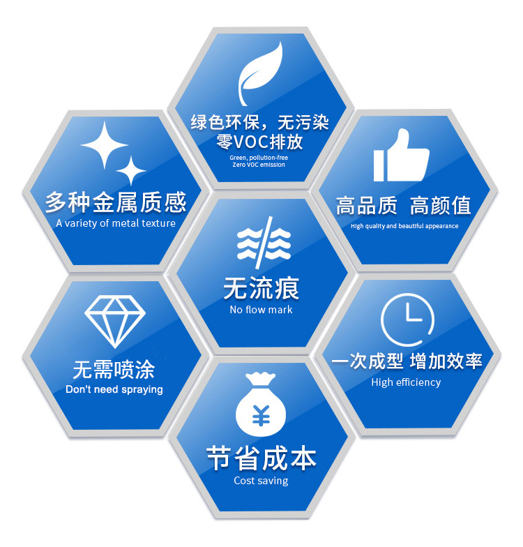 將銀色免噴涂塑料用做多層共擠表面料,不僅能夠為廠家節約成本、節省生產周期,更能夠推動社會環保事業的發展。